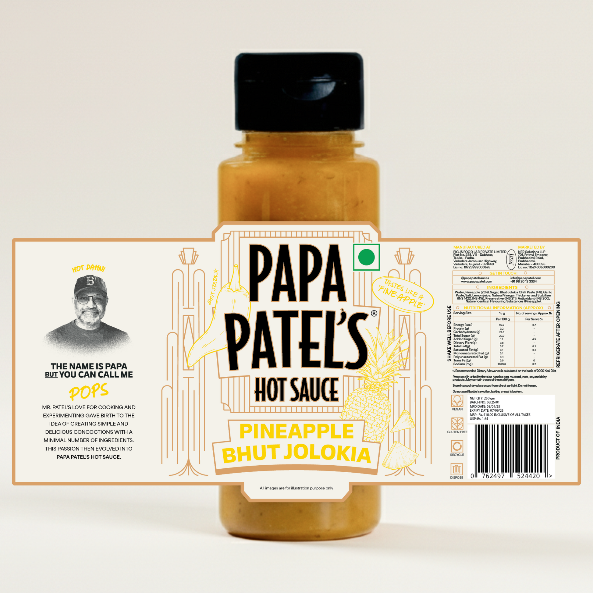 Sweet meets scorchin’ in Papa Patel’s Pineapple Bhut Jolokia sauce. A juicy hit of pineapple sweetness, followed by the slow, fiery kick of Bhut Jolokia. Use it as a glaze, dip, or secret weapon—just be ready for the afterburn!